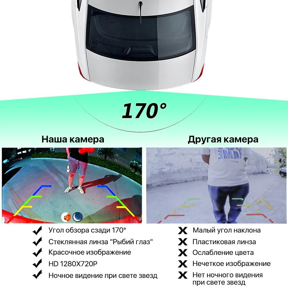 Wide Viewing Angle: The 170° “fisheye” lens covers the entire area behind the vehicle, effectively eliminating blind spots.